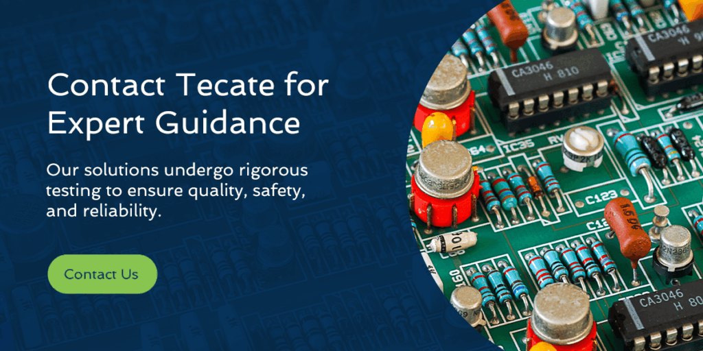 Tecate Group has over 40 years of experience manufacturing and supplying electronic components. Our experience includes serving the industrial-equipment, data-storage, telecommunications, and transportation industries, as well as other industries that rely on capacitors to achieve high-performing electrical systems.