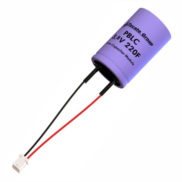 Tecate Group’s Hybrid Capacitors (LIC) provide an alternative energy storage device utilizing best of class EDLC and Lithium Ion technologies. The PBLCโ„ข series features the quick connect Molex 87439-0200 for safe handling for off-board integration, energy dense capacitance in multiple radial designed cylindrical sizes, working voltage up to 3.8V with 500,000 rapid charge/discharge cycles. Additionally, you will find a compact footprint and cylindrical package sizes which maximize space allocation in design. The increased energy and power provided protect critical information from being compromised when sags, dips or outages occur from the main power source.