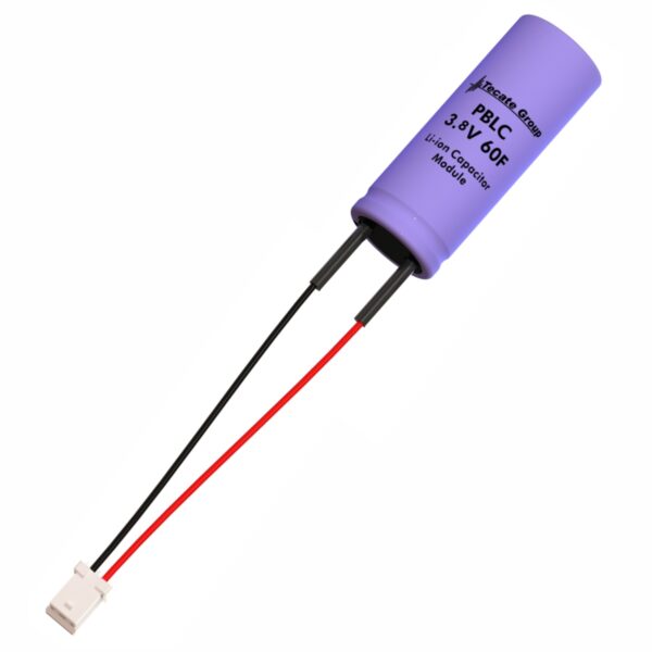Tecate Group’s Hybrid Capacitors (LIC) provide an alternative energy storage device utilizing best of class EDLC and Lithium Ion technologies. The PBLCโข series features the quick connect Molex 87439-0200 for safe handling for off-board integration, energy dense capacitance in multiple radial designed cylindrical sizes, working voltage up to 3.8V with 500,000 rapid charge/discharge cycles. Additionally, you will find a compact footprint and cylindrical package sizes which maximize space allocation in design. The increased energy and power provided protect critical information from being compromised when sags, dips or outages occur from the main power source.