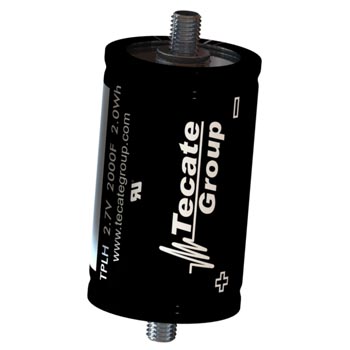 Large cylindrical ultracapacitor cells, screw terminals, extremely low ESR, high power density, high reliability.