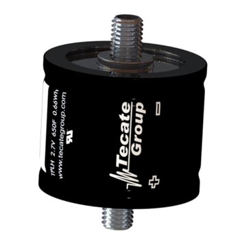 Large cylindrical ultracapacitor cells, screw terminals, extremely low ESR, high power density, high reliability.